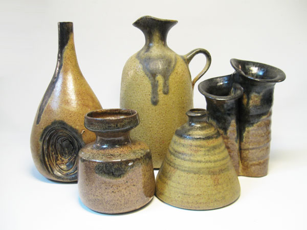 Keramikvasen in unterschiedlichsten Formgebungen überwiegend Laufglasuren in Erdtönen.