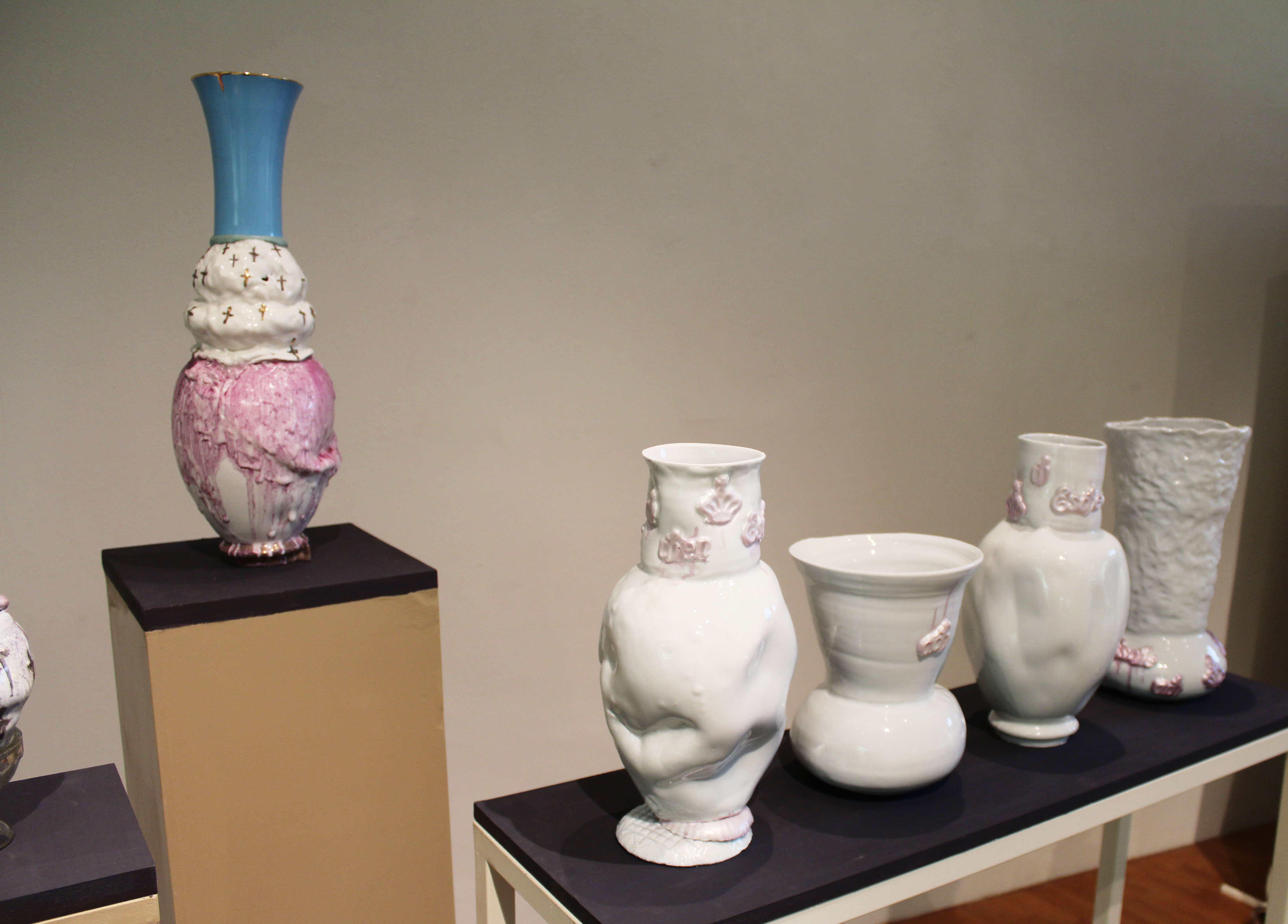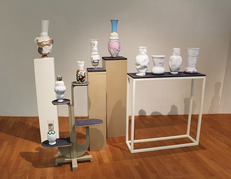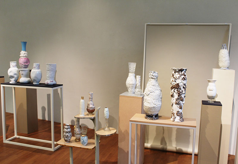 Auch Lutz Könecke konnte mit neuen Formen und Glasuren beeindrucken. Seine mutigen Gefäßmontagen sind einzigartig und wirken teils wie Gefäße aus der Zukunft. Der Grundgedanke der Kasseler Schule und somit von Walter Popp, spiegelt sich in seinen Formen wieder.